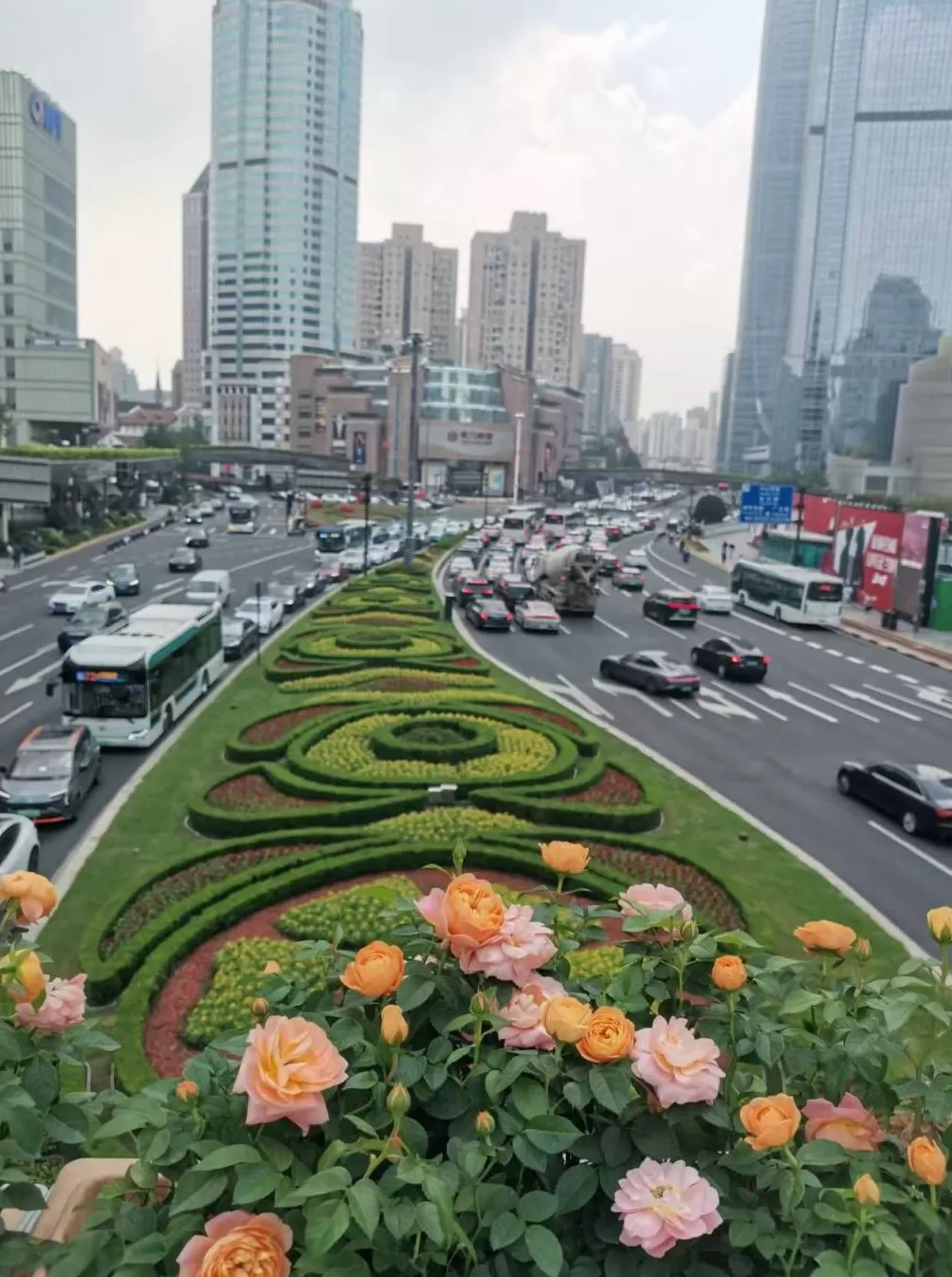 今年国庆花卉布局延续"核心区域+主干道"的框架,覆盖人民广场、外滩、陆家嘴三大市级标志性区域,延伸至静安寺、徐家汇等八大重点片区,串联延安路、世纪大道等十二条城市动脉,形成立体化的节日景观体系。