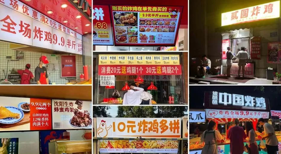 价格内卷同样加剧:手枪腿从 15-20 元降至普遍 9.9 元,部分品牌更低;“秤盘炸鸡”采用自选称重低价引流;买一赠一成常态,“第二份 0 元”海报随处可见。网友戏言“全国鸡叉骨都买一斤送半斤?”