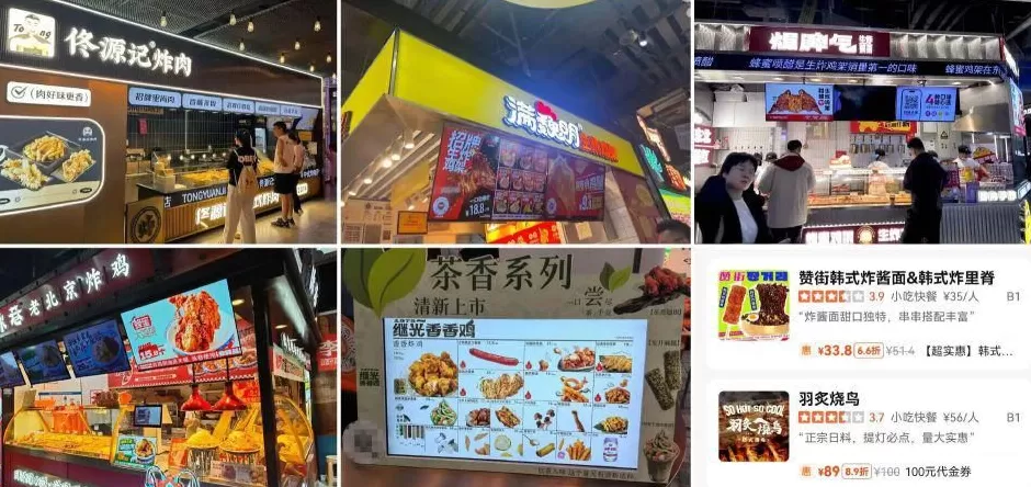 现实残酷:中式炸鸡门店激增,“一条街 3 家店”的贴身竞争普遍。北京朝阳合生汇 B1 层聚集至少 5 家中式炸鸡品牌,如佟源记、咏巷、满巍明、暴脾气,外加韩式、日式炸物店同台竞技。