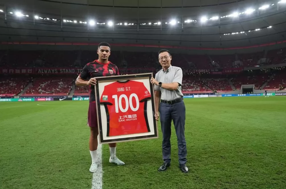 赛前,海港俱乐部为蒋光太举行了出战百场纪念仪式。
