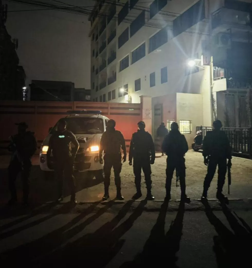 华人雇佣的荷枪实弹警察部队执行安保任务